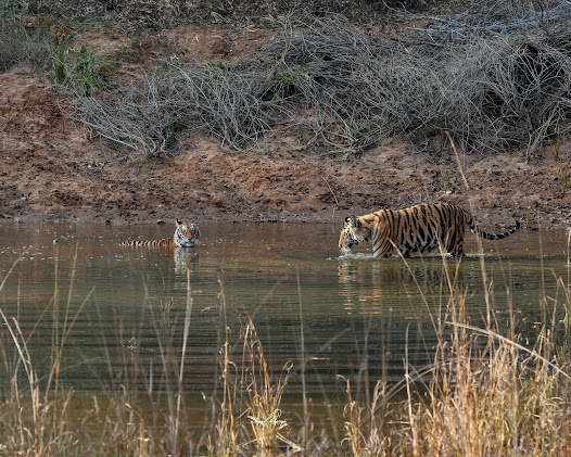 Things that ran through my mind - what is he doing here? Tigress and her cubs can be anywhere near and tigress will be aggressive as she will perceive him a threat to her cubs. There is tall grass how will he handle himself ? Why this risk? What is making him do this? What is his motivation?
